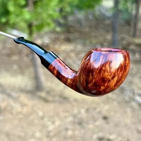 This light weight Danish egg is features beautiful grain and a stem handmade from German black ebonite. The stem fitted with a Delrin rod tenon for long life. This pipe will make a great edition to your pipe rotation.