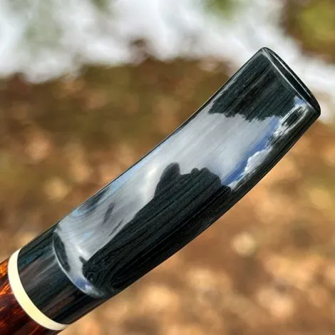 This smooth Danish style full bent tobacco pipe is made from Italian briar and is fitted with a handmade stem made from German SEM blue Cumberland ebonite.