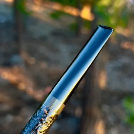 This smooth and rusticated OD green billiard style tobacco pipe is a classic design made from 30 year aged briar, is fitted with a handmade German ebonite stem and features a black & green Cumberland stem accent . The stem is fitted with a Delrin tenon for durability.