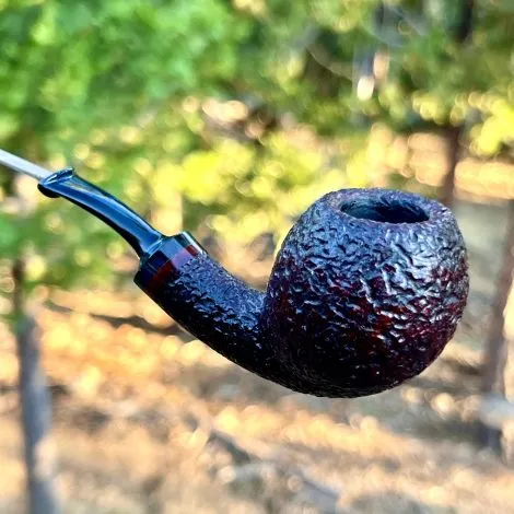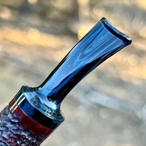 This beautiful brown rusticated Danish egg is made from Greek briar and features a handmade blue and black ebonite stem.